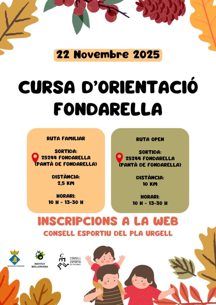 • Cursa d’orientació en format open i familiar a Fondarella (zona lúdica i Parc de la Serra).